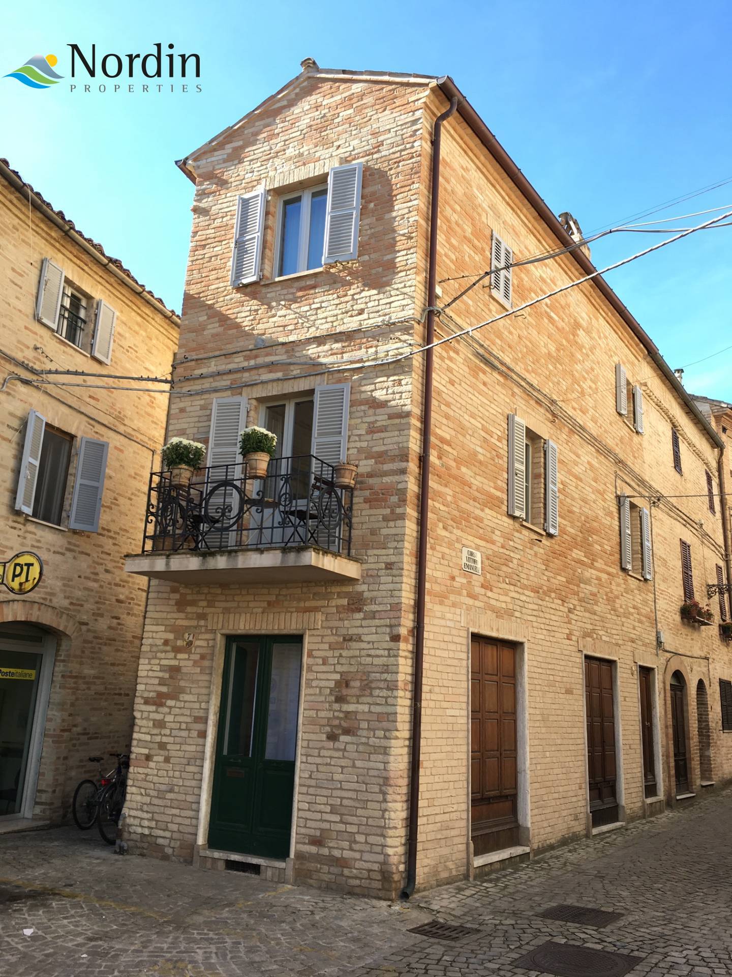 A classic brick townhouse in the historical centre of the municipality of Montottone in the south of region Marche. The present owners have done very nice restauration keeping many of original details. The building contains of a basement with storage rooms, the ground floor which was a shop in the past, first floor and second floor. There are three bedrooms, two bath rooms, kitchen with fireplace and a balcony and a living room. The location is very central and the piazza in front of the building can be used as your additional living room! Shops and other services is to be found right outside the door. Many events are offered all year around. All utilities are connected and working. Distance to the Adriatic Sea is about thirty minutes.