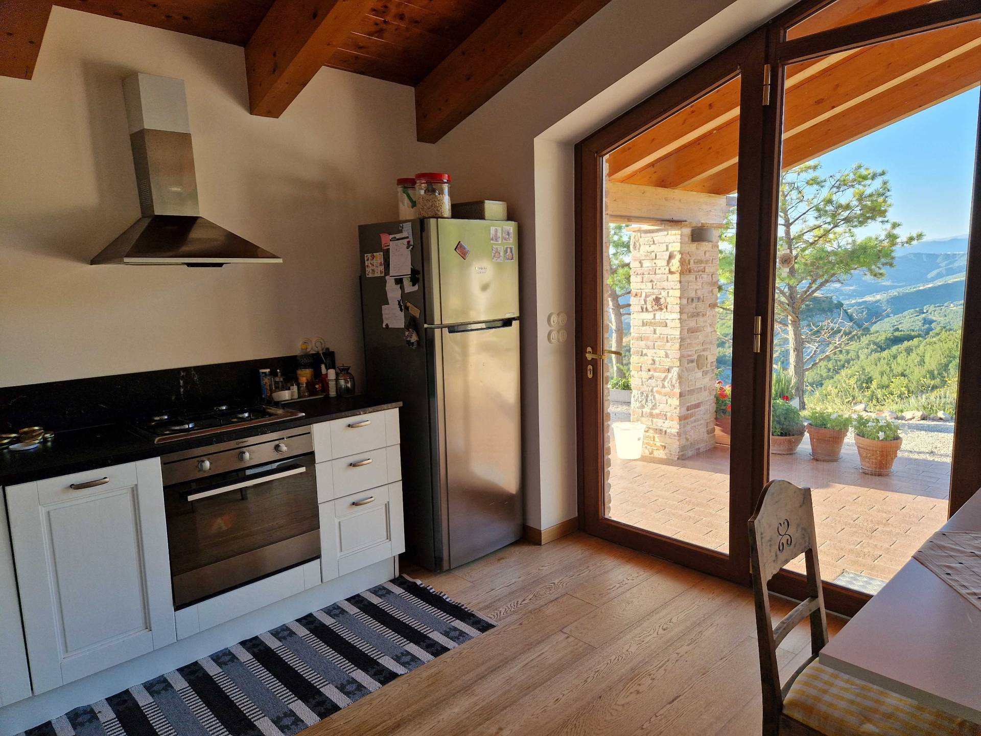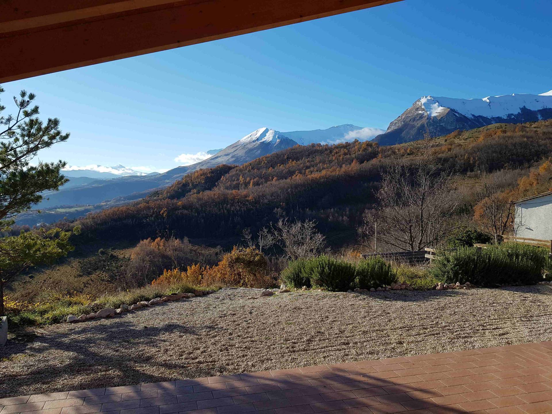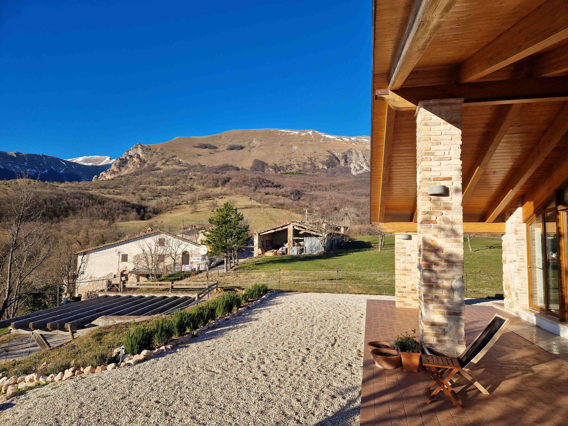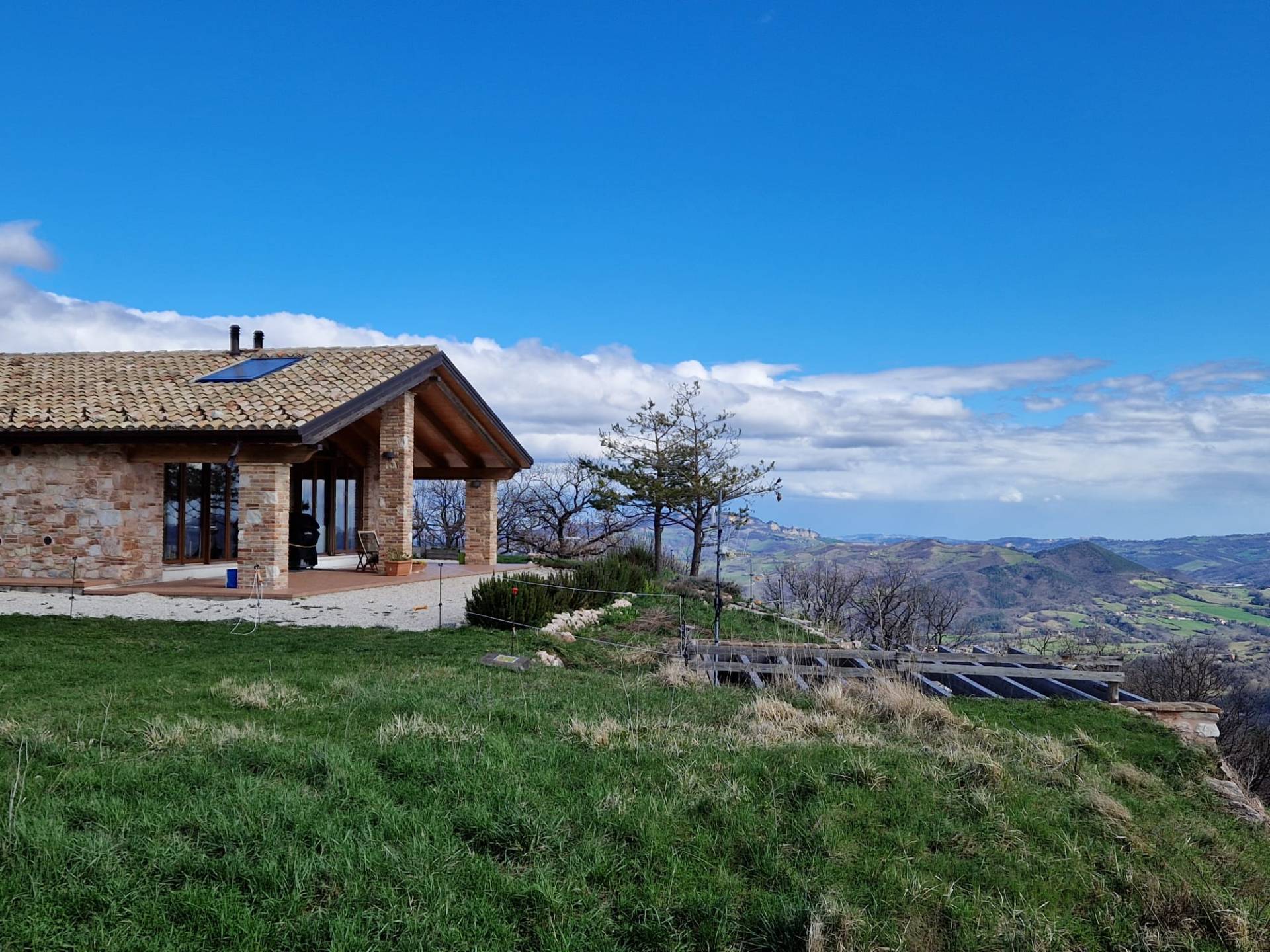 Fristående hus i ett högt läge, byggt 2015. Utsikten på 360° sträcker sig från Gran Sasso, den högsta toppen i Apenninerna, till Conerohalvön vid Adriatiska havet.