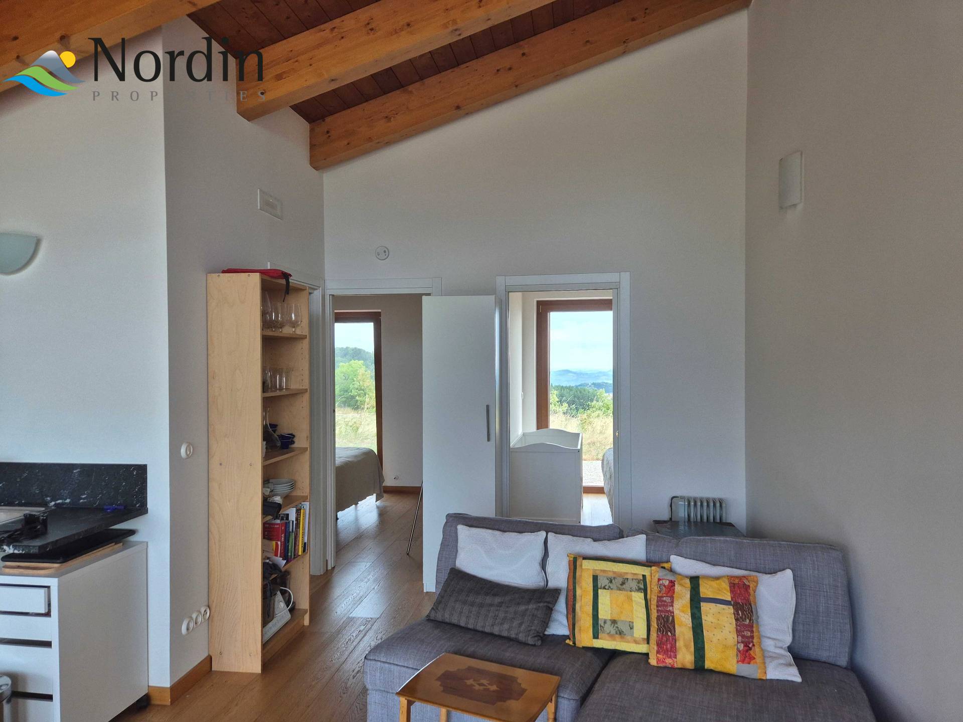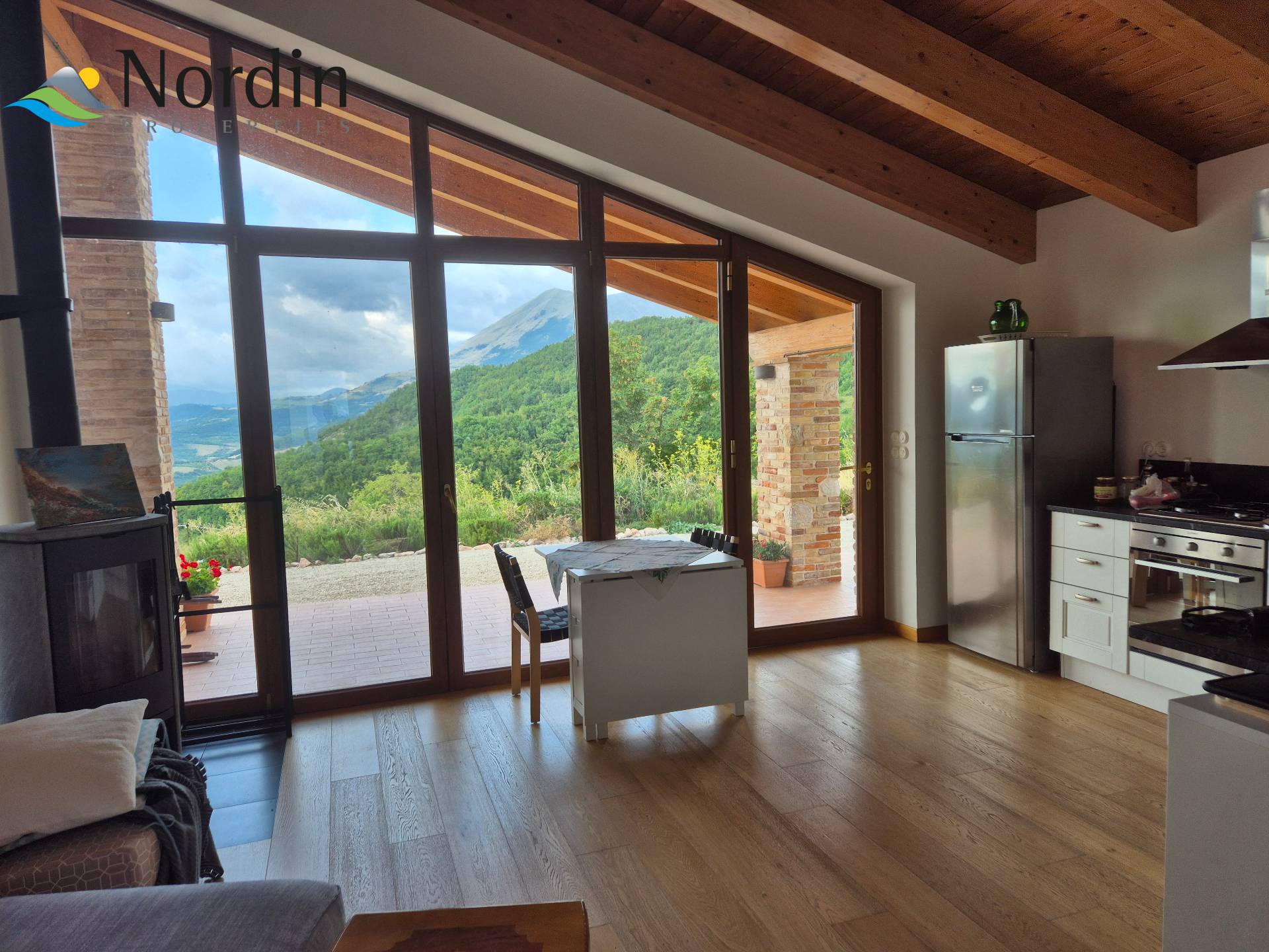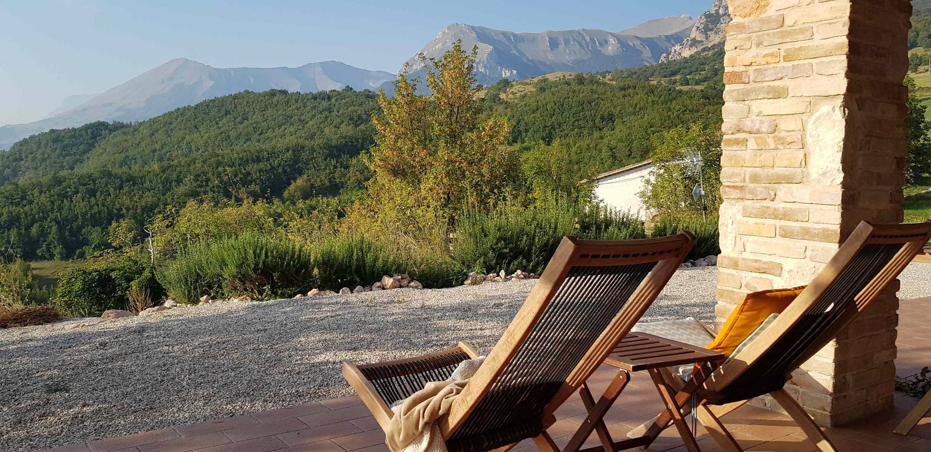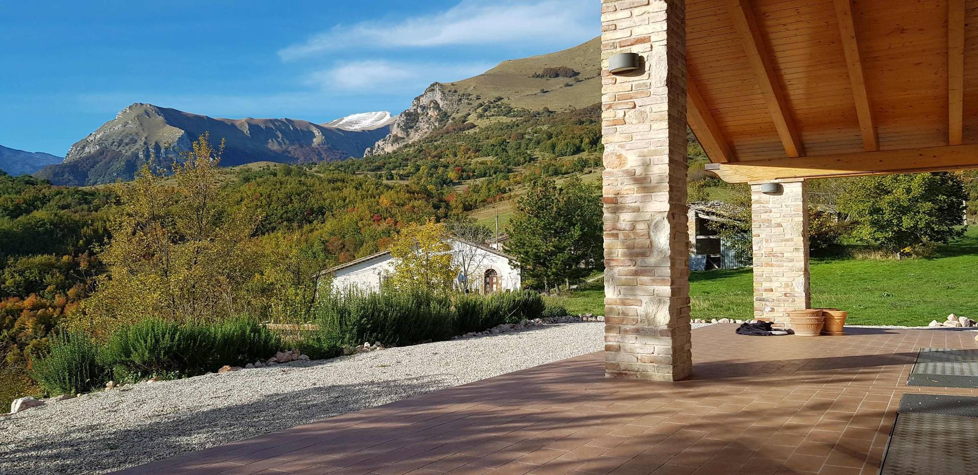 Fristående hus i ett högt läge, byggt 2015. Utsikten på 360° sträcker sig från Gran Sasso, den högsta toppen i Apenninerna, till Conerohalvön vid Adriatiska havet.
