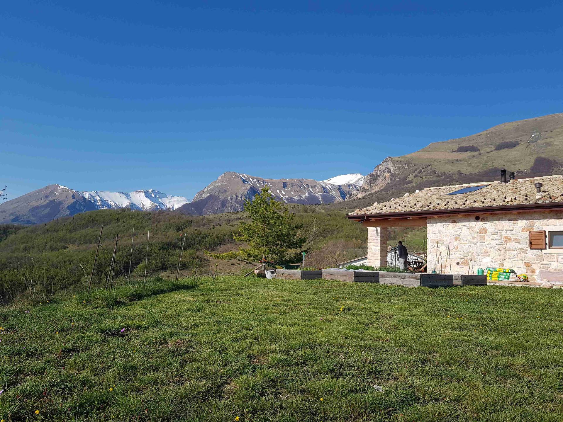 Närmaste stad, Amandola, ligger cirka 6 km bort, där de sista 2,5 km är en grusväg som kan vara utmanande för vissa, men man vänjer sig. Amandola erbjuder allt du behöver för vardagen: affärer, barer, restauranger, apotek, bank, postkontor och till och med ett nytt sjukhus. Kusten ligger cirka 50 minuter bort. Energiklass: B.
